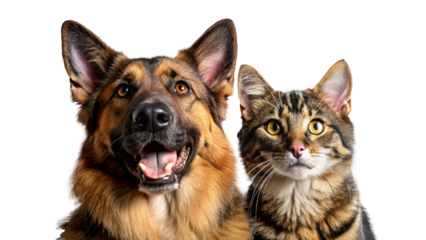 close up of German shepherd dog and cat with cute expressions