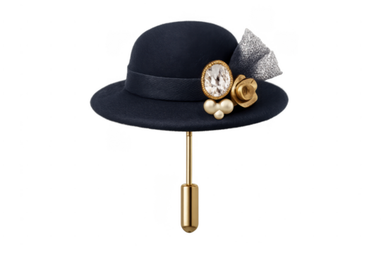 A detailed studio shot of a naval officer's cap with a gold anchor emblem and braided embellishments