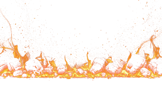 Fire spark overlay with smoke and flame background. Grill heat glow in cloud isolated transparent vector border. Realistic flying red sparkle abstract illustration. Hell bonfire fiery with hot cinder