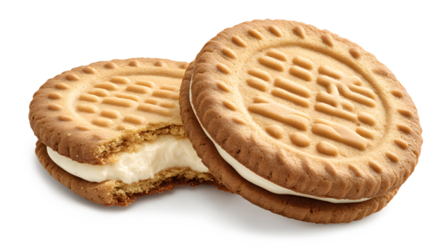 Bolo cookie, bitten cookie, creamy filling, embossed logo, golden brown color, crisp texture, PNG background