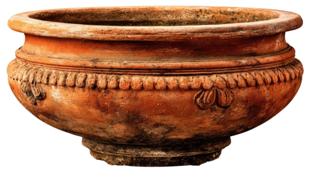 Terracotta planter with ornate design