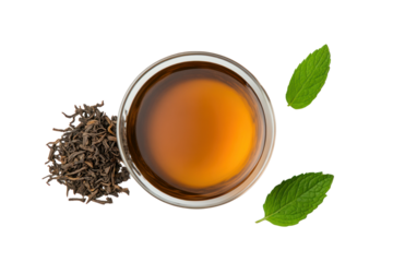Aromatic Tea Bliss: Experience the soothing embrace of a perfectly brewed cup of tea, complemented by fresh mint, offering a moment of tranquility and refreshment.