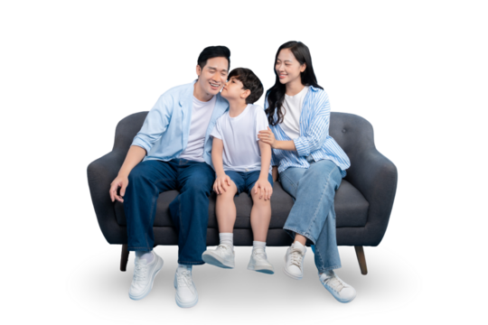 A family is sitting together happily on a couch. The scene shows a sense of warmth, love, and togetherness on PNG