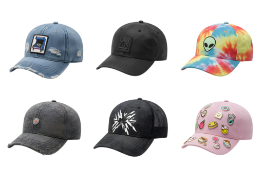 Collection of Six Stylish and Unique Baseball Caps and Dad Hats..