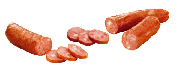 Composição com linguiça calabresa defumada fatiada isolado em fundo transparente