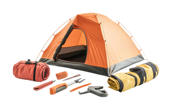 Camping Tent Repair Kit with Essential Tools - Isolated on White Background