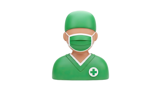 3D Icon of a Medical Professional in Green Scrubs and Mask