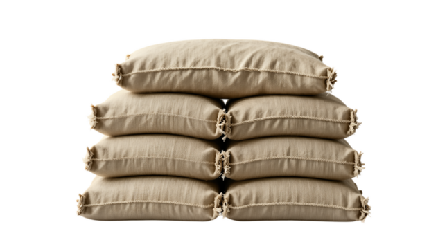 Stack of tied sandbags isolated
