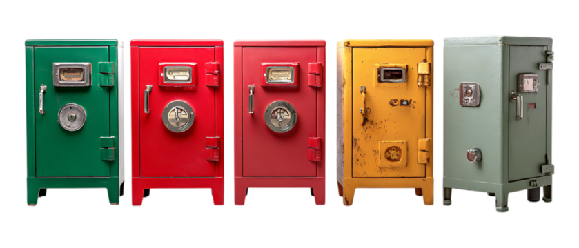 Pack of Fireproof Safe Against Transparent Background for Security Designs, Emergency Planning, or Financial Protection Promotions