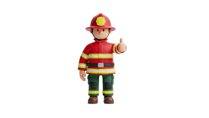 3D Cartoon Firefighter Giving Thumbs Up on transparent background