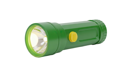 A compact and durable flashlight with a strong beam, isolated on transparent background, ideal for everyday use and emergency situations