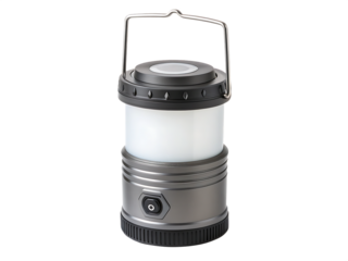 Portable led camping lantern with hanging handle and on off switch isolated on transparent background