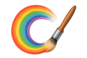 Colorful rainbow arc emerging from paintbrush, symbolizing artistic creativity against transparent background