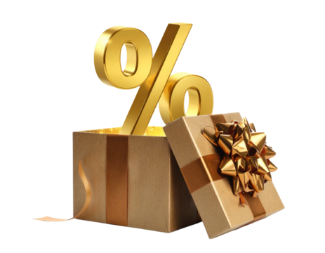 Percentage Symbol Emerging from Gift Box with Confetti