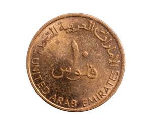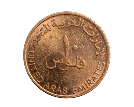 Arab Emirates ten filis coin on a white isolated background