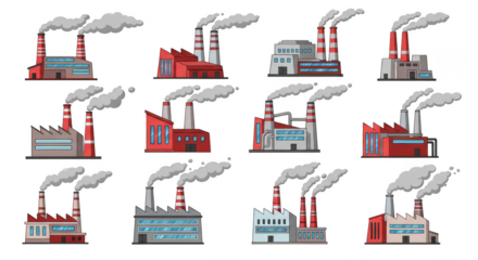 Industrial factory with smoking chimneys on a white background cutout transparent png