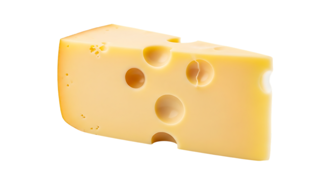 Isolated Swiss cheese wedge with holes food product for commercial and culinary use