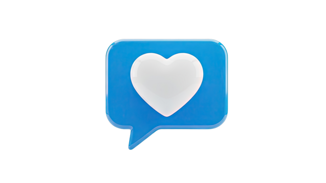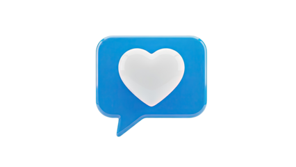 3D Blue Speech Bubble with White Heart Icon