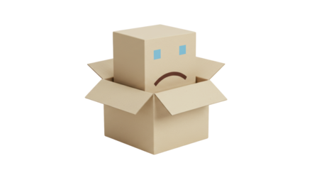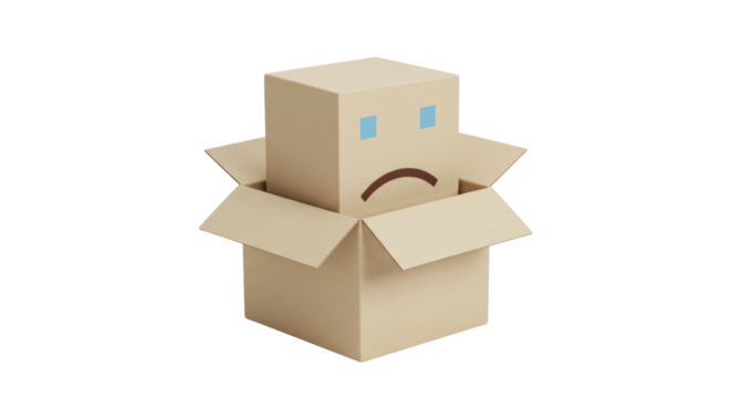 Cardboard box with winking face emoji sticking tongue out, expressing playful delivery and fun packaging