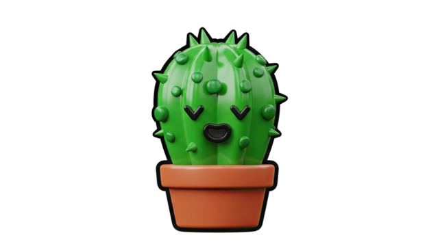 Cute Kawaii Cactus Character in a Pot on transparent background