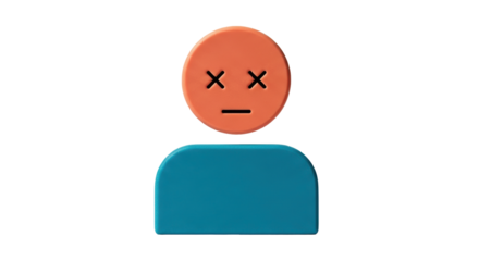 Isolated character of dead or sad person, emotionless with crossed out eyes, no expression