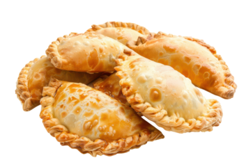 A stack of golden-brown, flaky empanadas, a delicious baked pastry. background removed