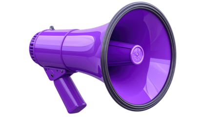 Glossy purple megaphone with detailed texture and metallic accents, isolated on black for emphasis