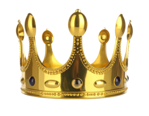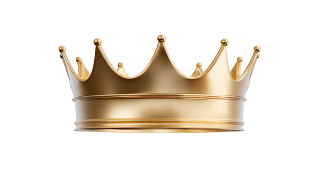 A majestic golden crown, representing royal authority and opulence, featuring elaborate designs and a brilliant sheen, isolated on transparent background