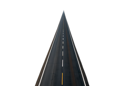 A serpentine roadway with crisp white lines and yellow detailing, framed by reflective barriers, creating an elegant path into the distance. Isolated on a transparent background