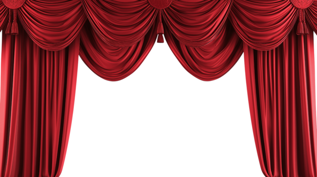 Red theater curtain with white background, png.