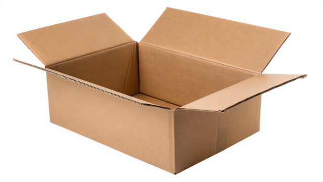 Closed and taped cardboard parcel boxes falling on transparent background with shadow