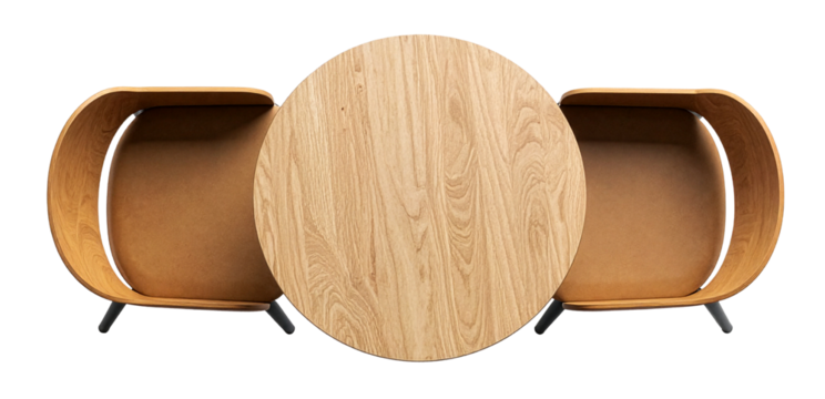 Wooden chairs and table on transparent background