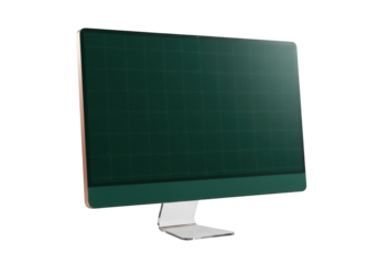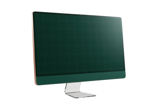Modern computer monitor with green screen isolated PNG, desktop display for graphic design and presentations on transparent background