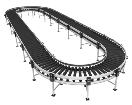 Curved roller conveyor system on white background isolated on a transparent background 1