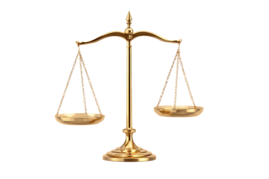 Golden Balance Scales with Empty Pans on Black Background justice, Isolated On Transparent Background, Png Cut Out