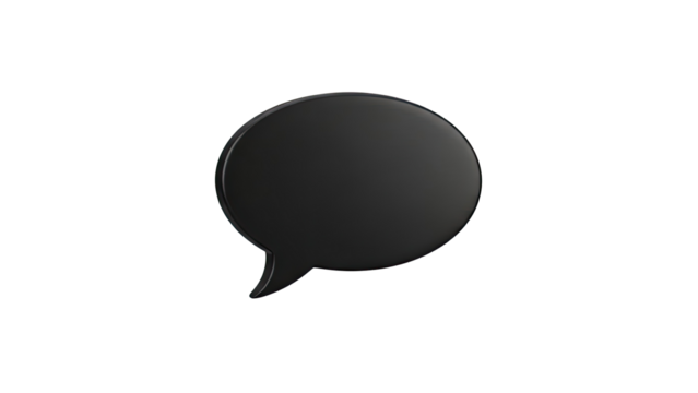 Glossy, black, rectangular speech bubble with rounded corners and a pointed tail on black