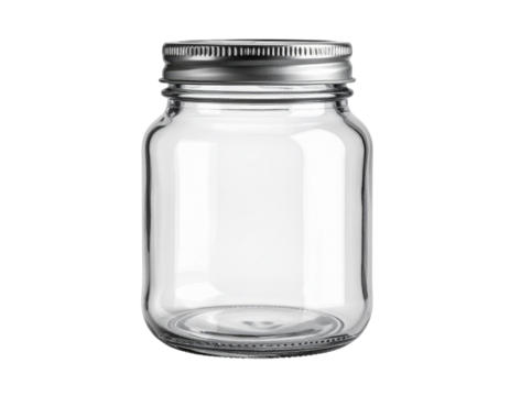 Empty jar isolated on transparent background for culinary, storage, and decorative design projects featuring clear glass and modern kitchenware elements