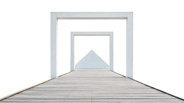 Abstract white corridor isolated on transparent background, perspective view