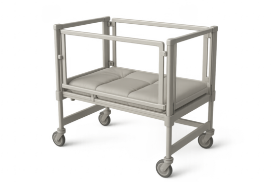 Empty hospital bassinet on wheels standing on transparent background