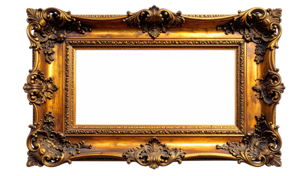 Ornate gold picture frame, rectangular shape with detailed carvings