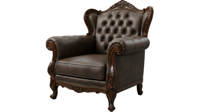 Classic Brown Leather Armchair Isolated on Transparent Background 3D Render
