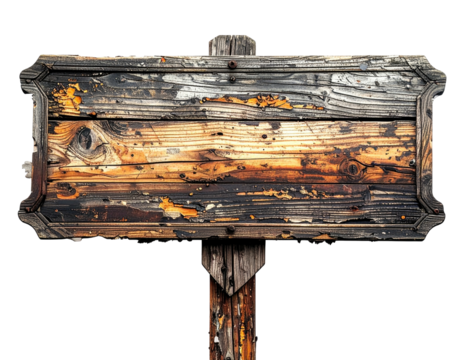Blank empty wooden rustic signage sign board isolated on transparent background.