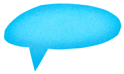 Blue blank cut out paper cardboard speech bubble of elliptical round shape with copy space for text on transparent or white background