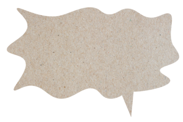 Brown blank cut out paper cardboard speech bubble of round shape with copy space for text on transparent or white background