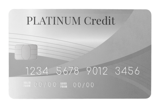 Close up of a red and gold credit card with a world map design and chip isolated on transparent background