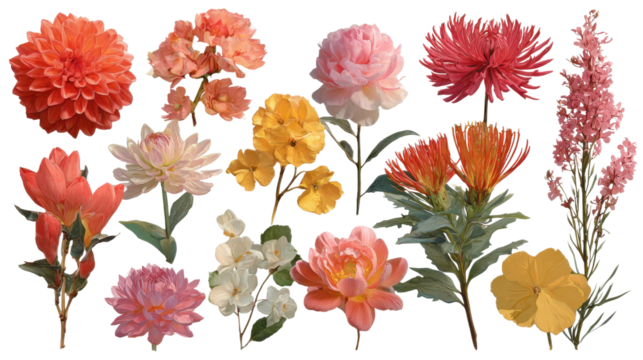 Vibrant flower arrangement nature digital art floral close-up. Isolated on transparent background, png.