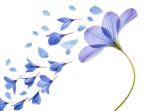 Delicate violet flower with soft blue petals gracefully releases its petals into air creating serene and enchanting scene