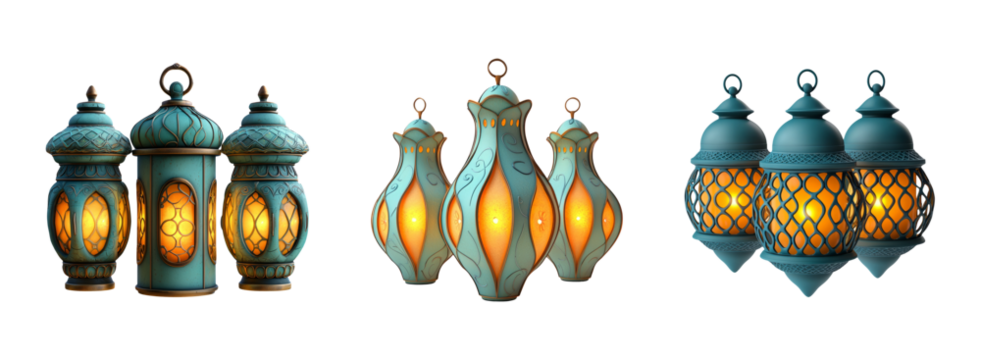 Elegant Decorative Lanterns with Glowing Light in Blue and Gold Design