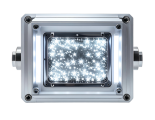 Metallic device with sparkling inner screen, illuminated by bright lights
