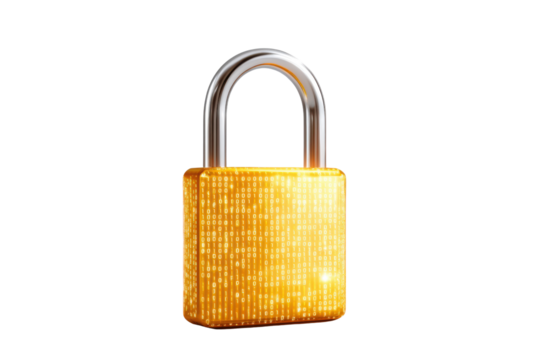 Transparent cybersecurity concept with locking mechanism and data symbols